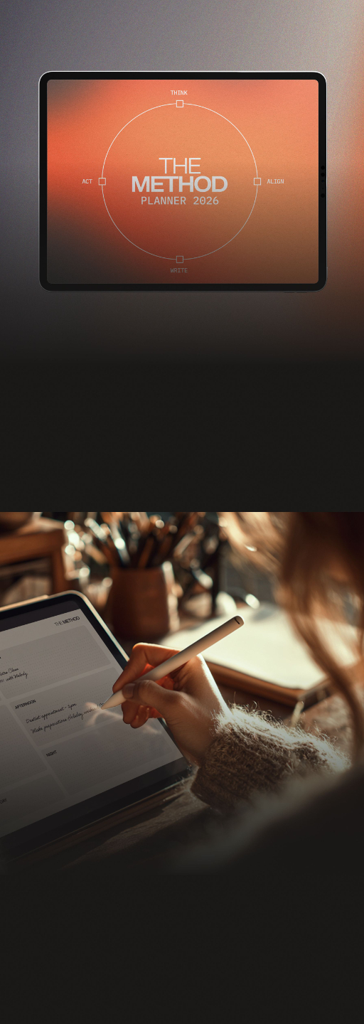The Method — eBook introduces the core ideas behind meaningful, sustainable change through concise guidance and practical reflection prompts. It’s a grounded, accessible companion for seasons of transition—helping you clarify what matters, reset your direction, and take thoughtful action. A simple starting point for deeper work, or a steady complement to the course and planner.
